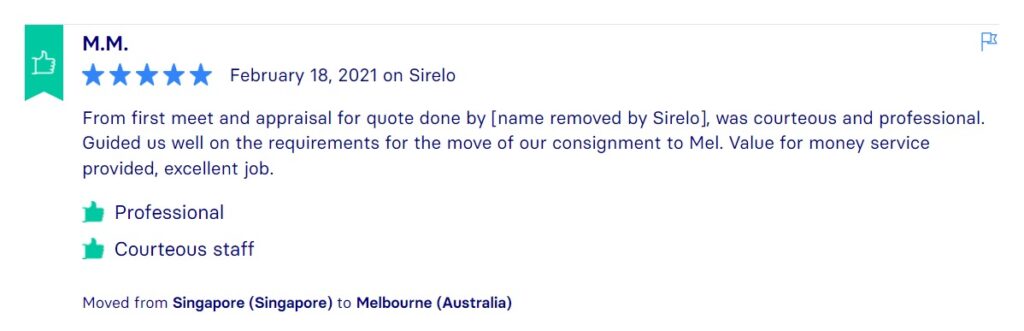 Sirelo Reviews, Across International Relocation Singapore Pte Ltd